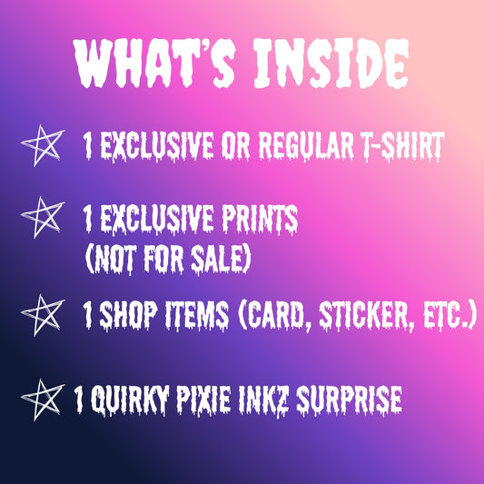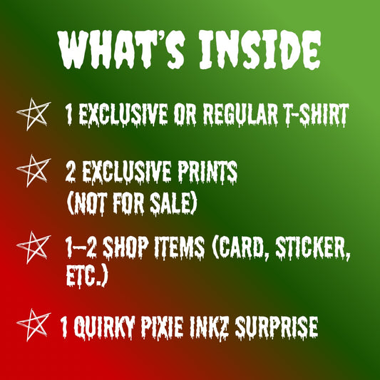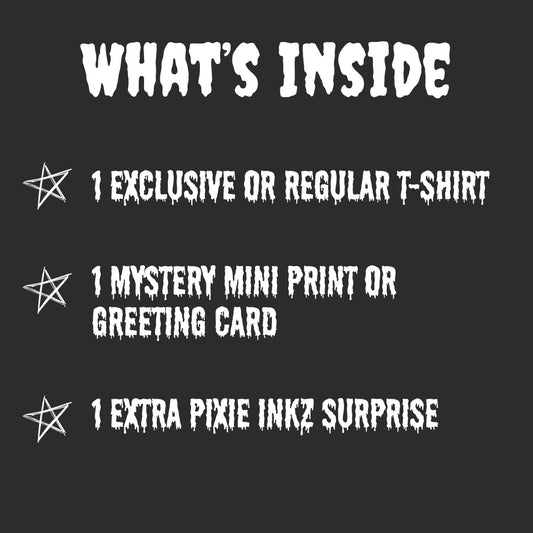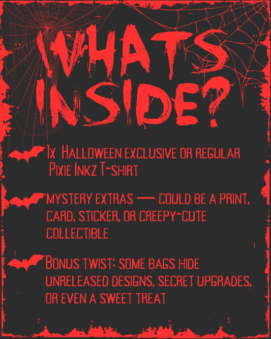 Step into the unknown with Pixie Inkz Mystery Bags & Bundles — curated chaos for ghouls, rebels, and collectors of the strange.